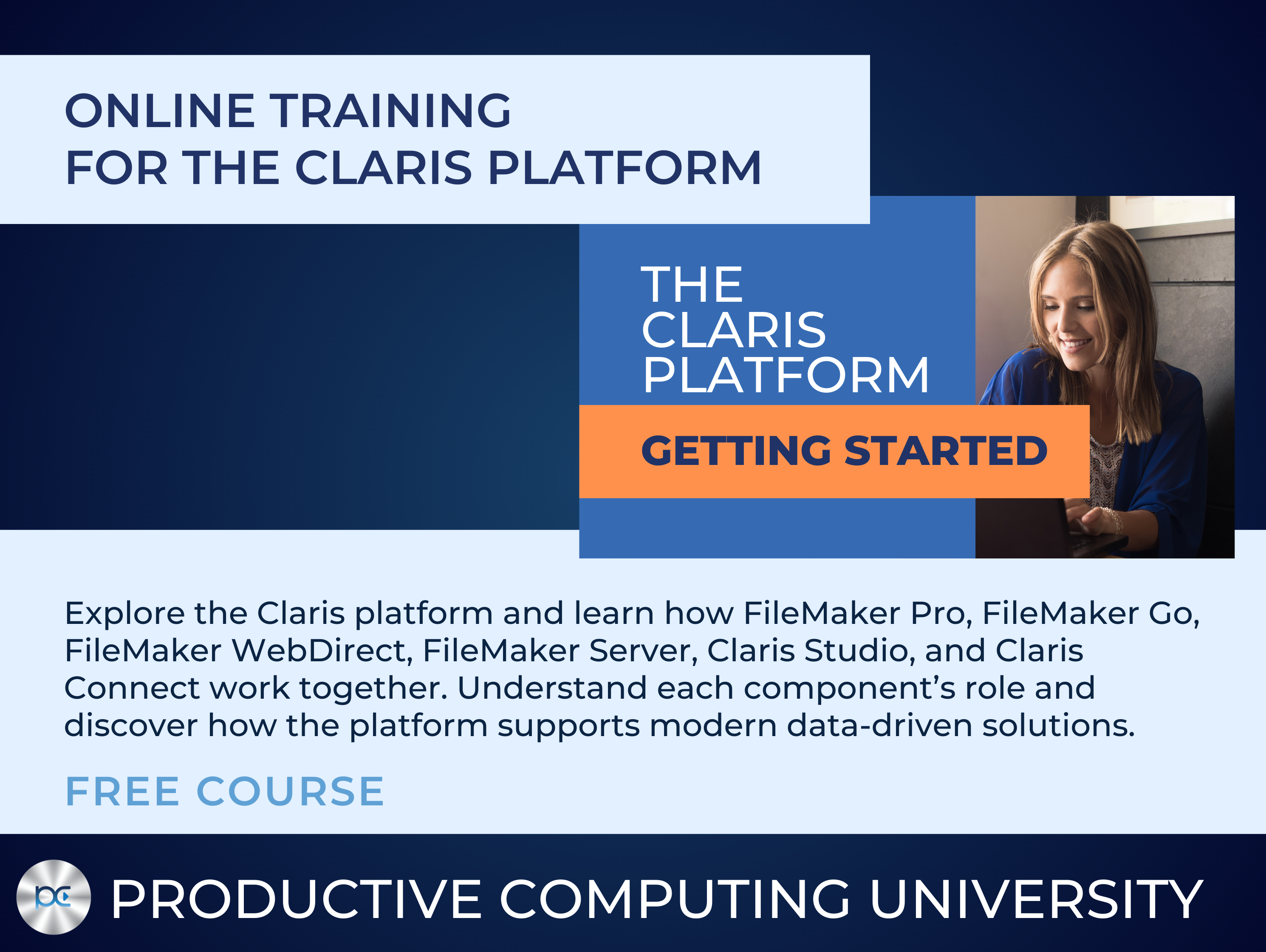 Product websiteThe Getting Started with the Claris Platform course from Productive Computing University provides an overview of the Claris ecosystem and the core components that power modern Claris solutions. This free training course introduces the major tools within the platform and explains how they work together to support data-driven applications for teams and organizations.